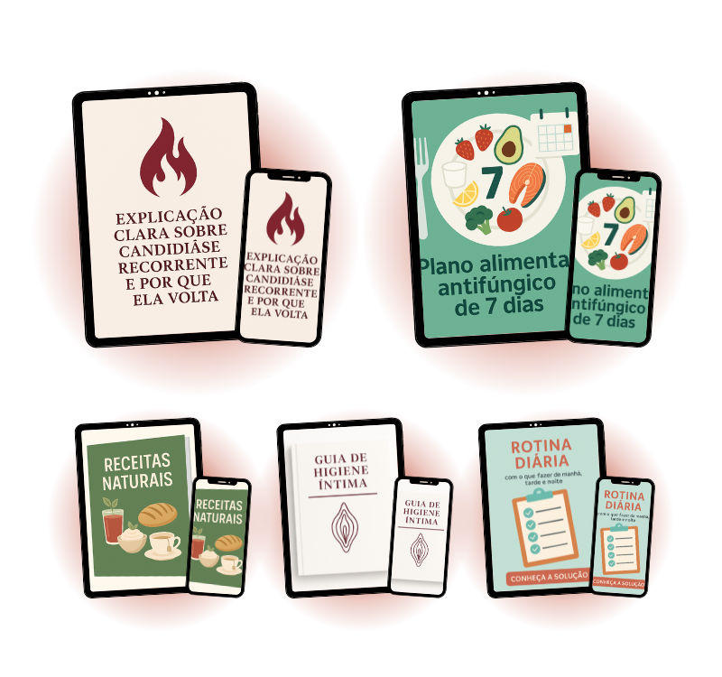 Você vai receber um conjunto completo de receitas antifúngicas e low carb, pensadas para reduzir inflamações e fortalecer a flora intestinal.